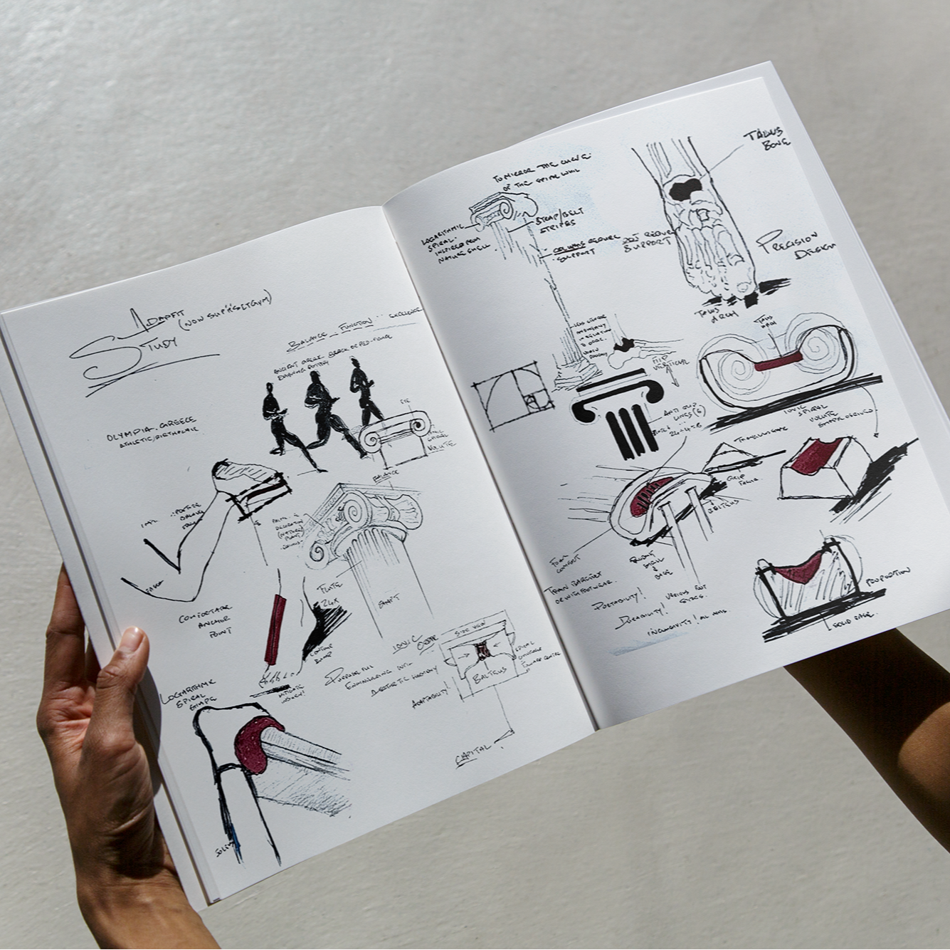 Inspired by the anatomy of the foot and the elegant curves of the Ionic Spiral, this design embodies balance, growth, and harmony.